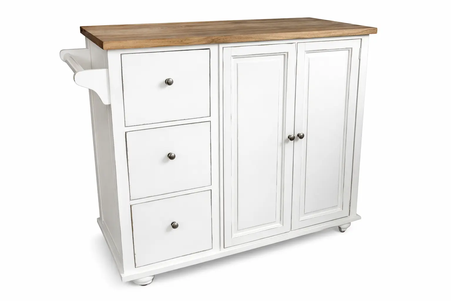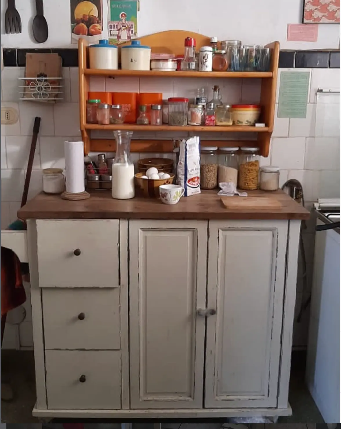 ISLA DE COCINA FUNCIONAL CON ACABADO BLANCO DECAPADO Y CUBIERTA MADERA NATURAL ESPECIAL PARA COCINAS R脷STICAS MODERNAS O FARMHOUSE